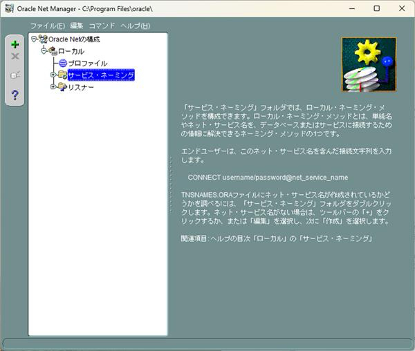 NetManagerを起動しましょう。サービス・ネーミングを選択し+ボタンを押します。