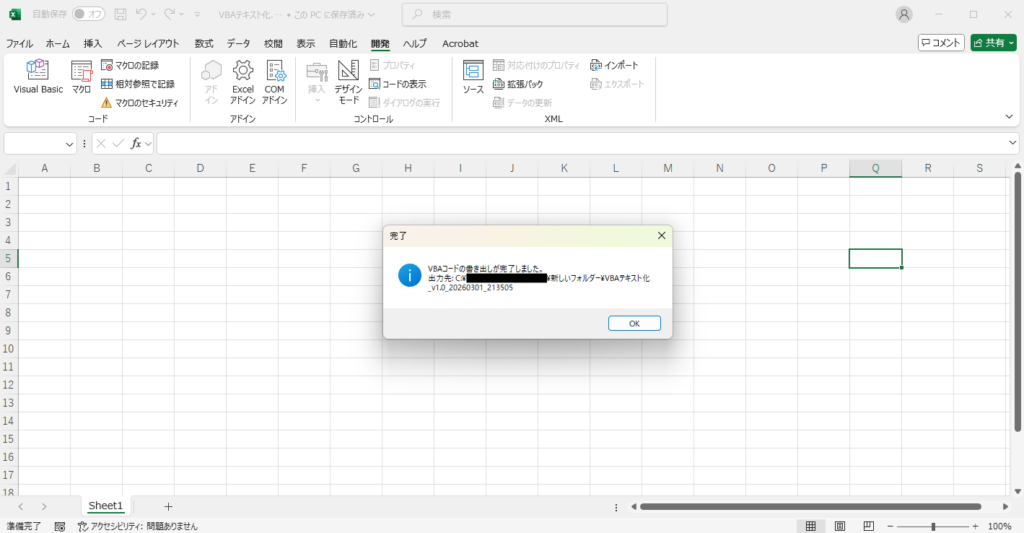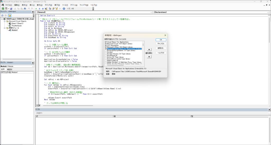 MsgBox "VBAコードの書き出しが完了しました。" & vbCrLf & "出力先: " & outDir, vbInformation, "完了"