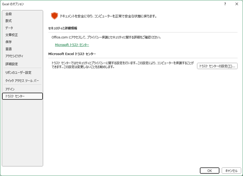 エラーが出る場合、マクロの信頼に対する設定を変更していないことが多いため確認しましょう。