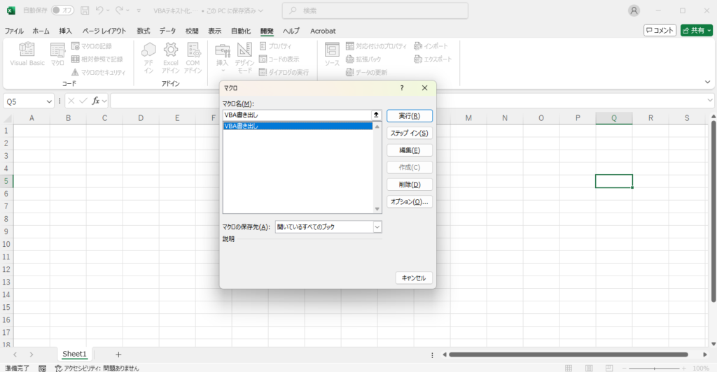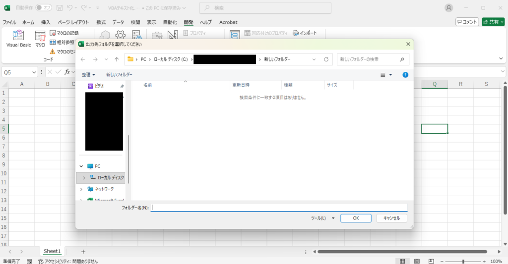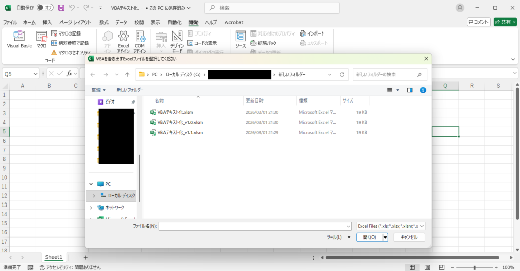 次にVBAで選択したExcelファイルのVBAコードを出力するツールを作成します。